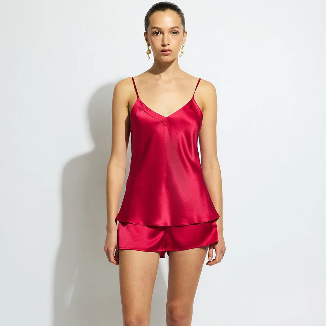 Silk Basics by GINIA are modern silk essentials designed for everyday wear — a thoughtfully curated collection of pieces that stand beautifully on their own or pair effortlessly together. The Silk Short offers a classic sleepwear silhouette with a contemporary finish, featuring a wide 1.5" waistband with elastic at the back and sides for a comfortable, easy fit. Gentle ruching through the elastic adds subtle volume, enhancing the natural drape and fluid movement of the silk.