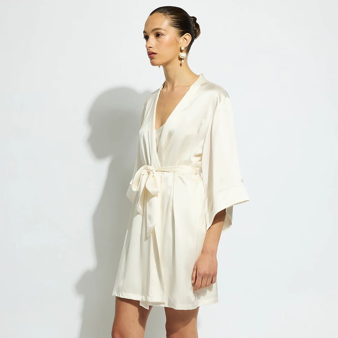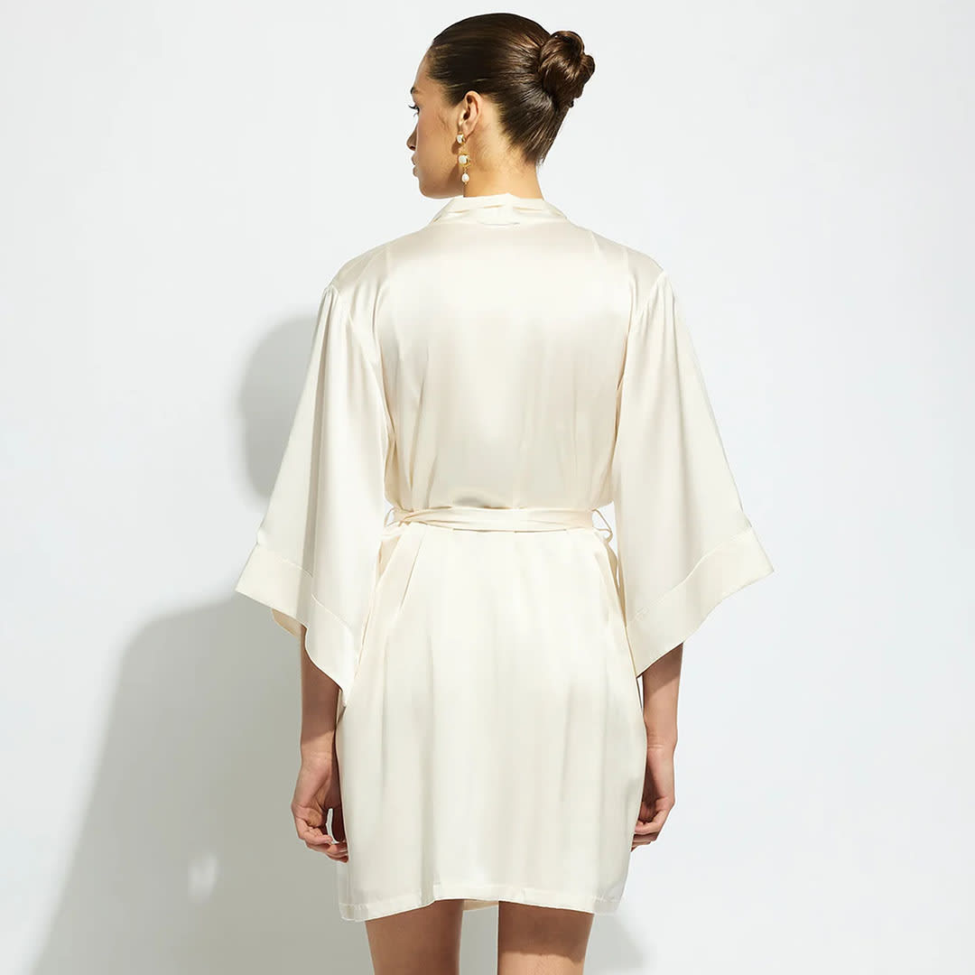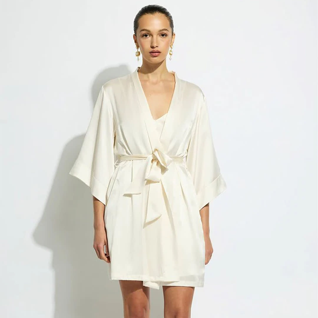 Echoing the timeless elegance of the GINIA woman, the Silk Wrap Robe offers a modern take on the classic dressing gown. This mini-length Silk Wrap Gown is crafted from 100% silk, draping beautifully to create a flattering silhouette. It features an inner ribbon for secure fastening and a wide silk sash for a refined finish. Part of the Silk Basics collection, it’s one of GINIA’s everyday essentials — thoughtfully designed pieces that stand beautifully on their own or pair effortlessly together.