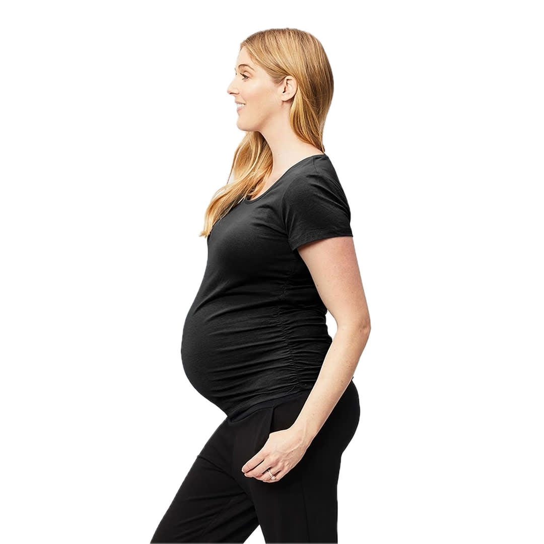 This basic Strudel Maternity Tee is made from comfy cotton which is soft and breathable. The flattering side ruching perfectly adapts to your growing belly, while the high hip hemline keeps it comfortably tucked under your bump and stops the tank riding up. Made from soft jersey fabric that morphs with your ever-changing body making them perfect for wear throughout pregnancy and beyond.
