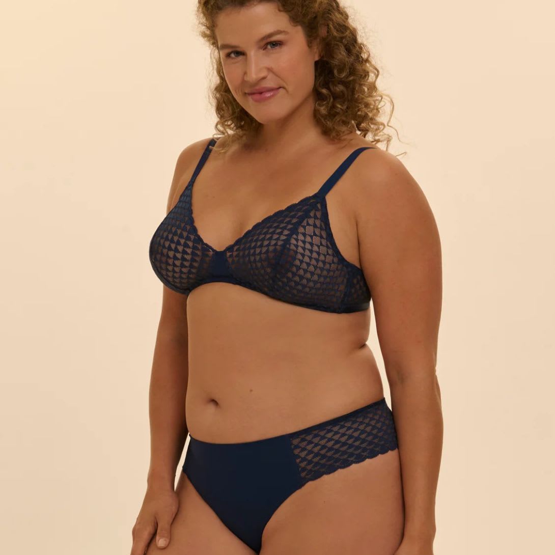 Boyleg brief style. Responsive, opaque knitted fabric. Clean-cut finishes for invisible wear. Lace detailing on the sides and back 100% cotton gusset.