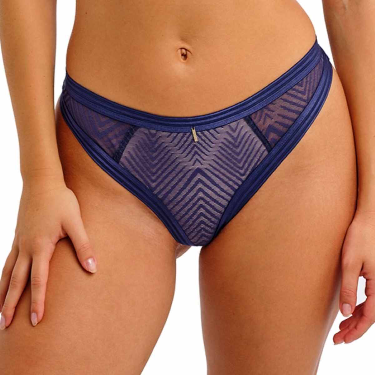 Complete the collection with the Tailored Brazilian, a stretch geo-lace front style featuring light lining in front for modesty and a fold over finish at the back for no VPL. Delicately finished with a rose gold bar trim at the centre front