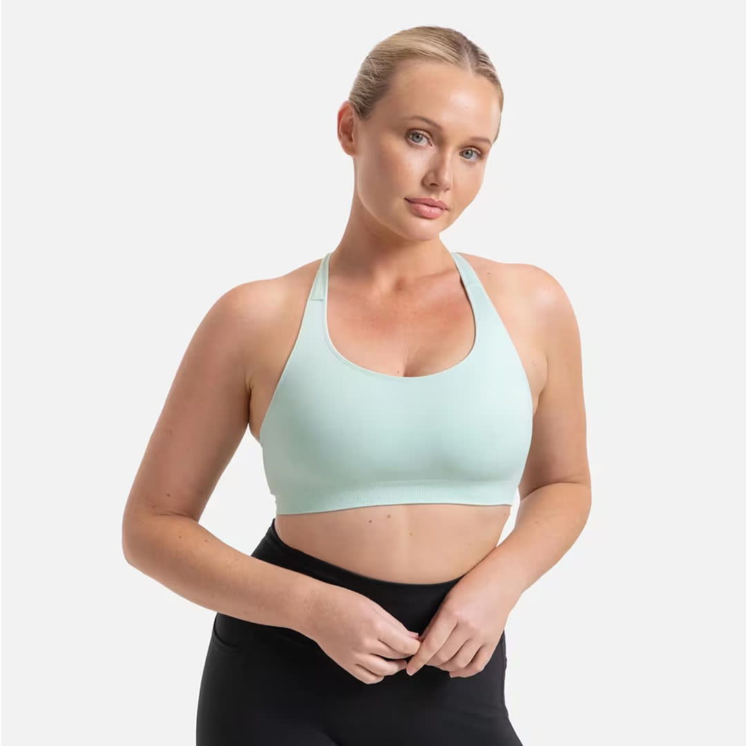 The Triaction Ultra Seamfree Crop Top has crossover straps and a double-layered front panel that holds the bust firmly in place; it is perfect for sports and versatile enough to wear under clothes or on its own.