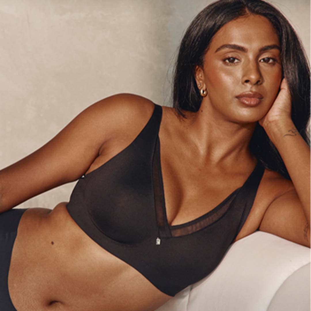 Experience ultra-smooth comfort in the True Shape Sensation Bra with improved finishes for a no-VPL look, cushioned straps, complemented by modern transparent tulle inserts. This non-wired, non-padded natural minimizer features double lamination with super-soft liners for breathability and stretch, offering 360° smoothing that retains your natural bust shape with nearly seamless, clean finishes that won’t dig in.