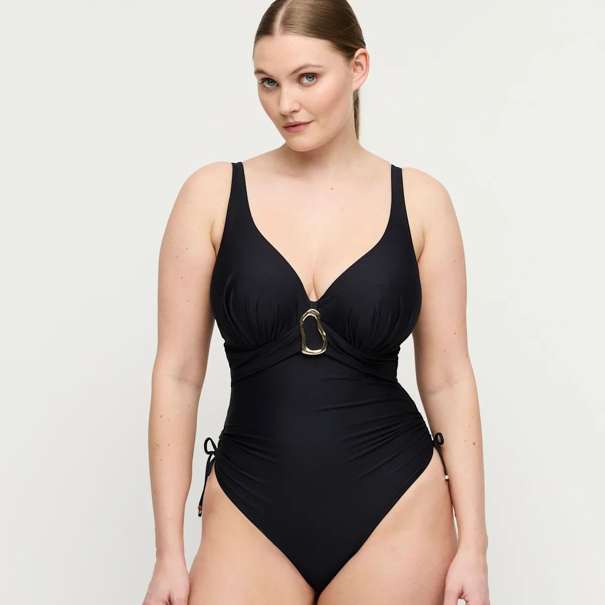 Sexy swimsuit featuring plunge cups for extra flirtiness.