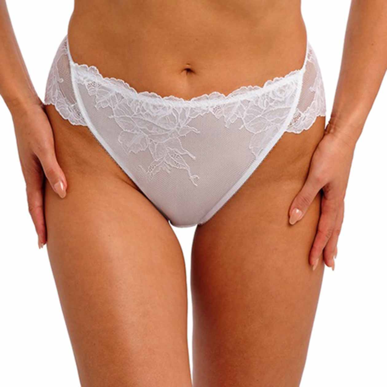 The Vivid Attraction High Leg Brief offers a modern and alluring look with its hi-cut design. It features lace with a bold floral pattern and scalloped edge on the front, complemented by a stretch mesh back. For comfort and discretion, it includes a cotton gusset and a lined front panel for modesty.