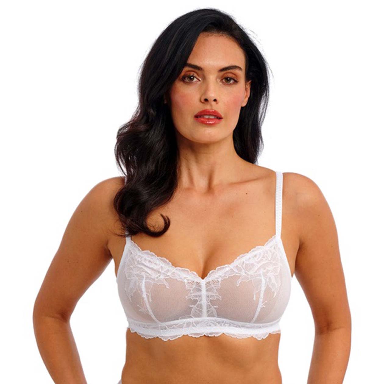 The Vivid Attraction Non-Wired Bralette offers comfortable support and captivating style. It features seamed lace cups with net lining and a side sling for added support, all crafted from lace with a bold floral pattern and scalloped edge. This bralette is finished with decorative, back-adjustable straps for a customized fit, elegant gold hardware, and a secure hook-and-eye back closure.