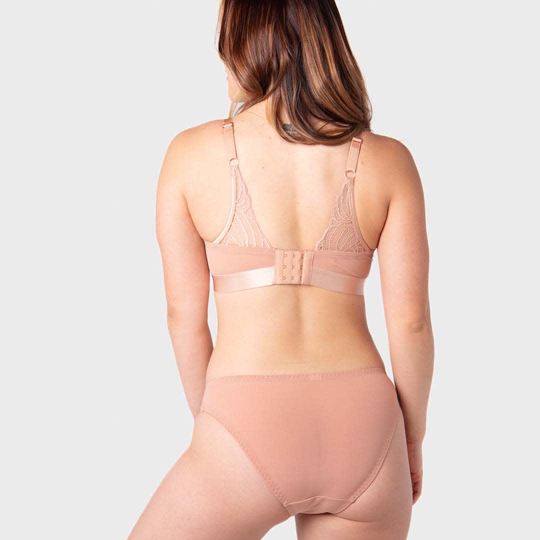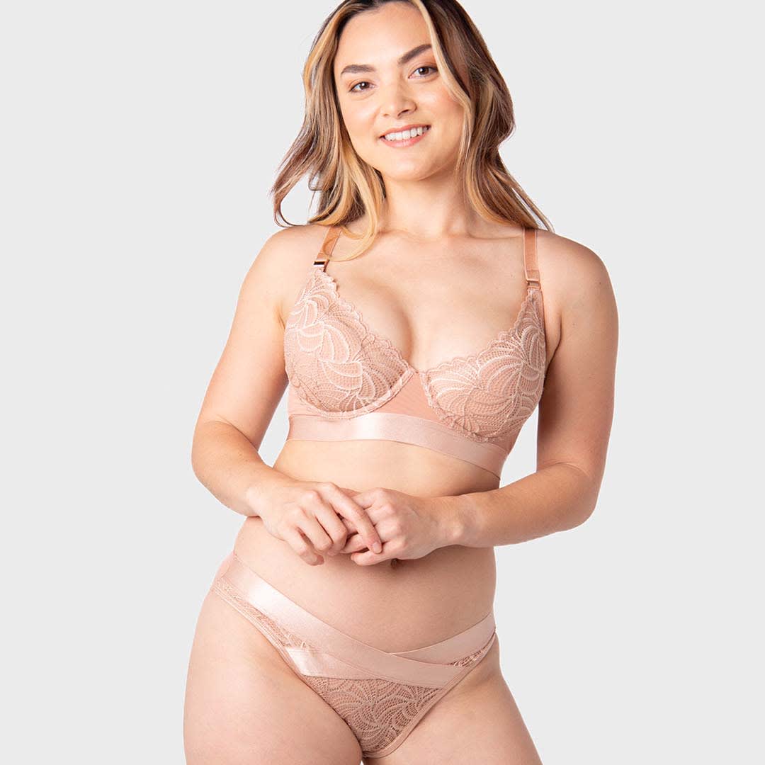 With graphic textured lace, sexy mesh and sleek shine elastic, Warrior Bikini crosses a new frontier. Low cut front elastic crosses daringly low under the belly expanding with your changing body.