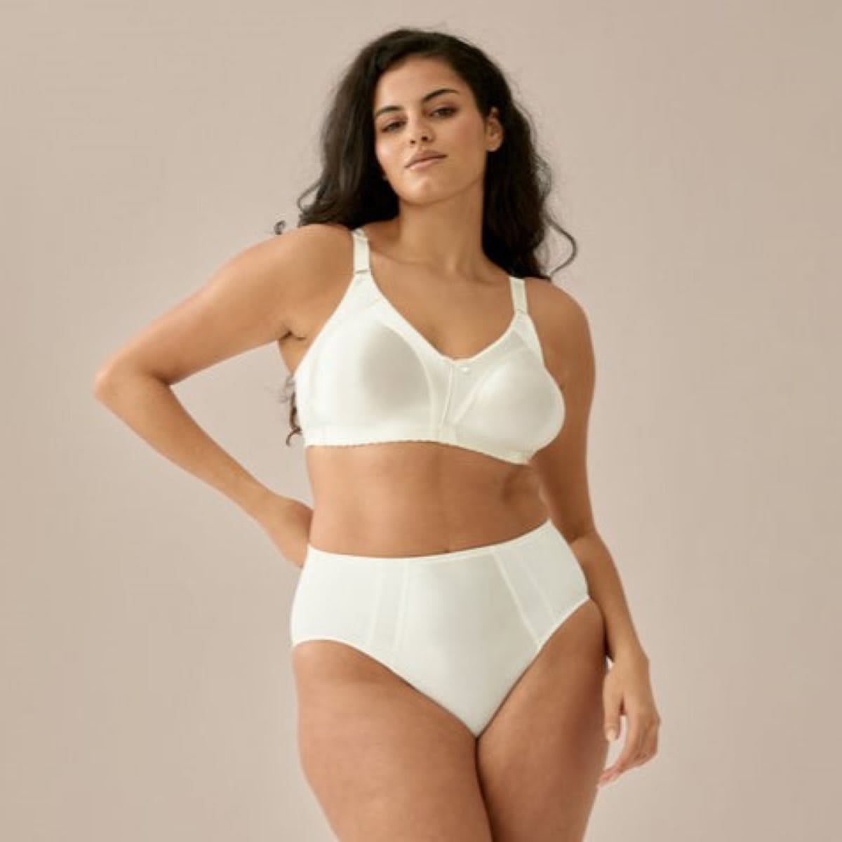 This minimiser bra by Naturana is crafted from beautiful glossy satin fabrics. It features non-wired, seamless cups with supporting side and breast panels. Adjustable straps and double-row, 3-position hook-and-eye back closure complete the look and provide ultimate comfort. It completely covers your bust giving nice support. Main fabrics: 90% Polyamide 10% Elastane.